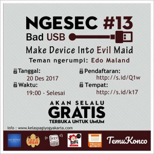 « All Events This event has passed. NgeSEC #13 December 20, 2017 @ 19:00 - 21:00 UTC+7 Free « NgeSEC #12 SecParty #1 » + Google Calendar+ iCal Export Details Date: December 20, 2017 Time: 19:00 - 21:00 UTC+7 Cost: Free Website: ngesec.id Organizer NgeSEC Team Email: rini@ngesec.id Website: ngesec.id Venue Kelas Pagi Yogyakarta Jl. Brigjen Katamso, Prawirodirjan, Gondomanan Kota Yogyakarta, Daerah Istimewa Yogyakarta 55121 Indonesia + Google Map