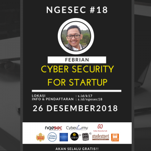 Pada tanggal 26 desember kami merumpi tentang “Cyber Security for Startup” yang di dampingi oleh mas Febri, catatan berikut adalah ringkasan dari materi yang telah disampaikan,
